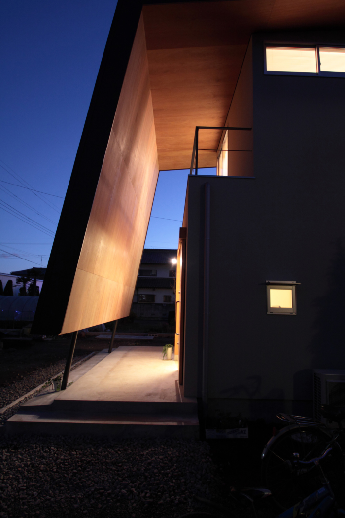 敷地は、畑の中に数件が寄り集まっている集落の中の農家住宅の一角である。かなり古くから存在していた納屋を取り壊し、空いたスペースに若い世帯のための家を建てる計画である。すでに長く住んでいる両親の家の前での生活を気兼ねなく営めるよう、大きなボリュームと小さなボリュームを繋ぐH型のプランとした。